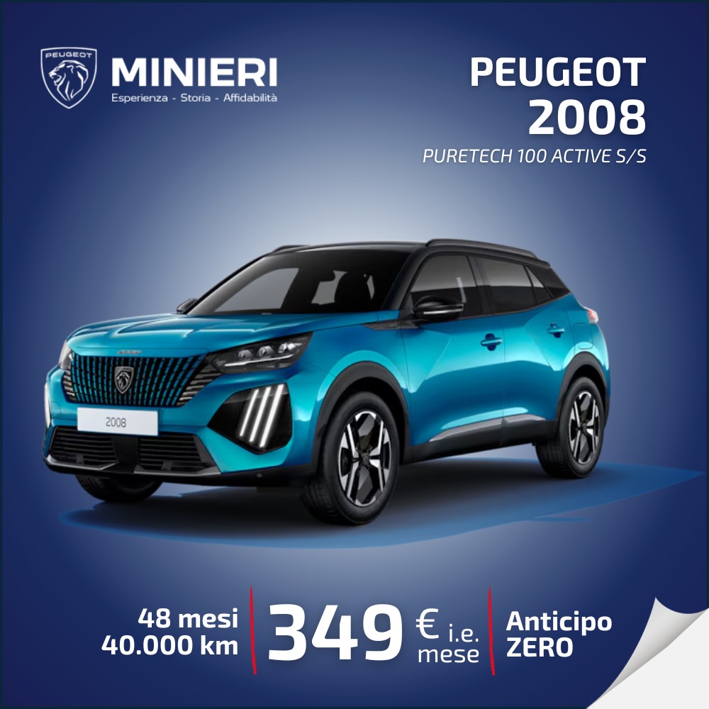 Nuovo SUV Peugeot 2008 in versione con Avtive, con motore benzina Puretech e il comodo sistema Stop&Start.